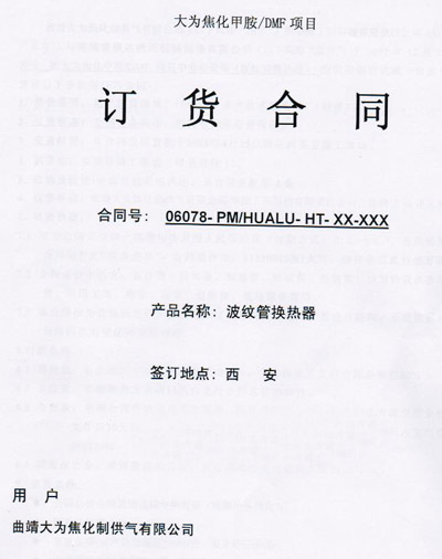 華陸工程科技有限責任公司向我司采購波紋管換熱器用于曲靖大為焦化制供氣有限公司。具體設(shè)備包括:T-711塔冷凝器;T-721塔冷凝器;T-731塔冷凝器;T-741塔冷凝器;T-751塔冷凝器;T-811塔冷凝器;T-821塔冷凝器
